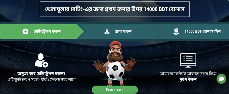 রেজিস্ট্রেশনের ৭ দিনের মধ্যে করা প্রথম জমায় বেটিং বোনাস ক্রেডিট করা হয়। এর পরিমাণ আপনার প্রথম জমার ১০০%। আপনার যা করতে হবে তা হলো: